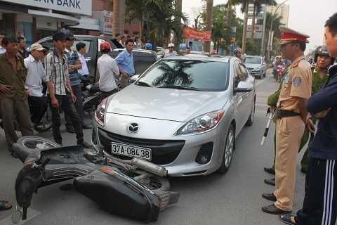 Cú va quệt khiến người và xe máy ngã xuống đường. Tài xế ôtô không chịu dừng lại mà tiếp tục chạy trong trạng thái lảo đảo khiến những người đi đường sợ hãi, dạt vào lề đường.