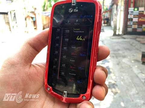 Tuy nhiên, khi PV VTC News sử dụng một số thiết bị đo nhiệt kế thì nhiệt độ ở ngoài trời giữa trưa ở Thủ đô Hà Nội lên tới gần 45 độ C.