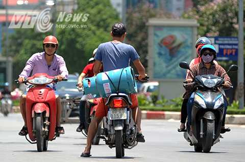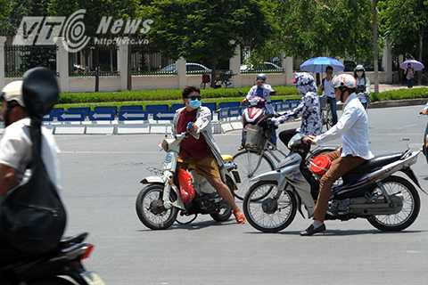 Nắng như ‘đổ lửa’ cộng với nhiệt độ bốc lên từ mặt đường nhựa khiến nhiều người đi đường không còn đủ kiên nhẫn đứng đợi đèn đỏ lên tới hàng chục giây tại các nút giao thông trên đường phố Hà Nội. Vì vậy, không khó để bắt gặp dòng người và xe ồ ạt vượt đèn đỏ, bất chấp nguy hiểm để nhanh chóng 'chạy trốn' khỏi nắng nóng.