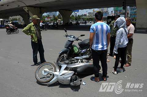 (VTC News) - Dưới cái nắng hơn 40 độ C như thiêu như đốt ở Hà Nội, nhiều người bất chấp nguy hiểm vượt đèn đỏ dẫn đến không ít vụ va chạm giao thông.