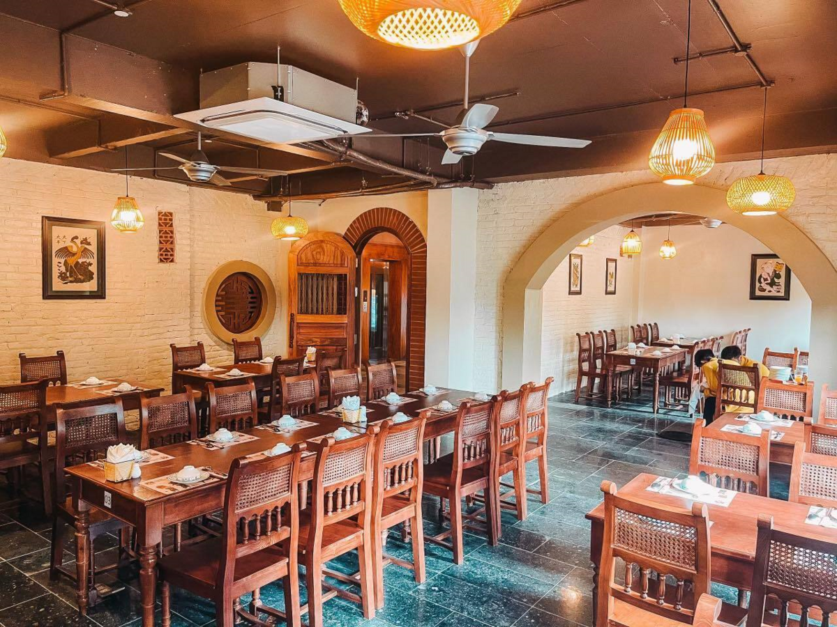 Nhà hàng Trạng Nguyên được trang hoàng sạch sẽ, tuân thủ quy định giãn cách nhưng không một bóng khách.