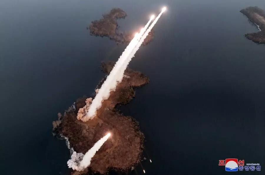 Ảnh vệ tinh cho thấy Triều Tiên phóng tên lửa đạn đạo tầm ngắn trong một cuộc tập trận. Ảnh: Sputnik