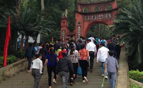 | Du khách vẫn nườm nượp về hành hương tại khu di tích Đền Hùng |