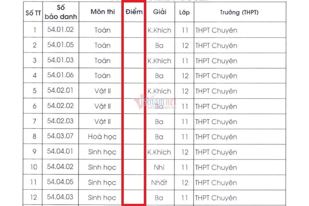 Ở phần công bố danh sách thí sinh đạt giải trong kỳ thi chọn học sinh giỏi quốc gia THPT năm học 2021-2022 bỗng "trống" cột điểm thi. Điều này khiến nhiều giáo viên, thí sinh thắc mắc bởi khác với thường lệ công bố như mọi năm.
