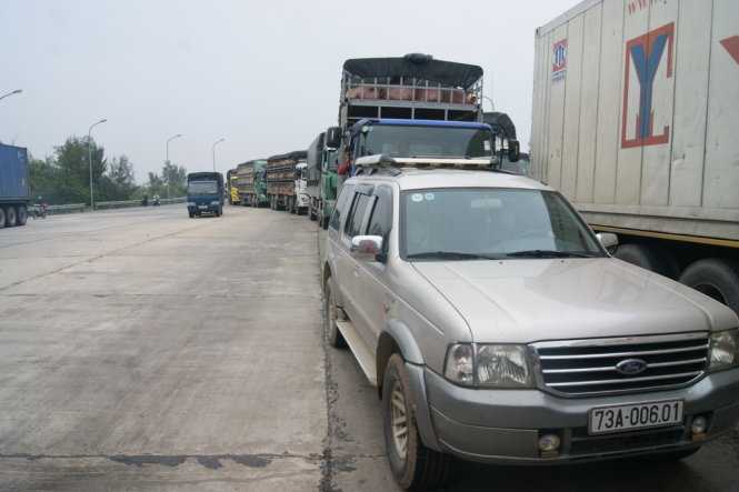 Cho rằng việc tăng phí đường bộ không đúng, nhiều người đã đưa ôtô đến chặn ngang trạm thu phí Quán Hàu (Quốc lộ 1A, tỉnh Quảng Bình) để phản đối việc áp dụng mức phí mới này.