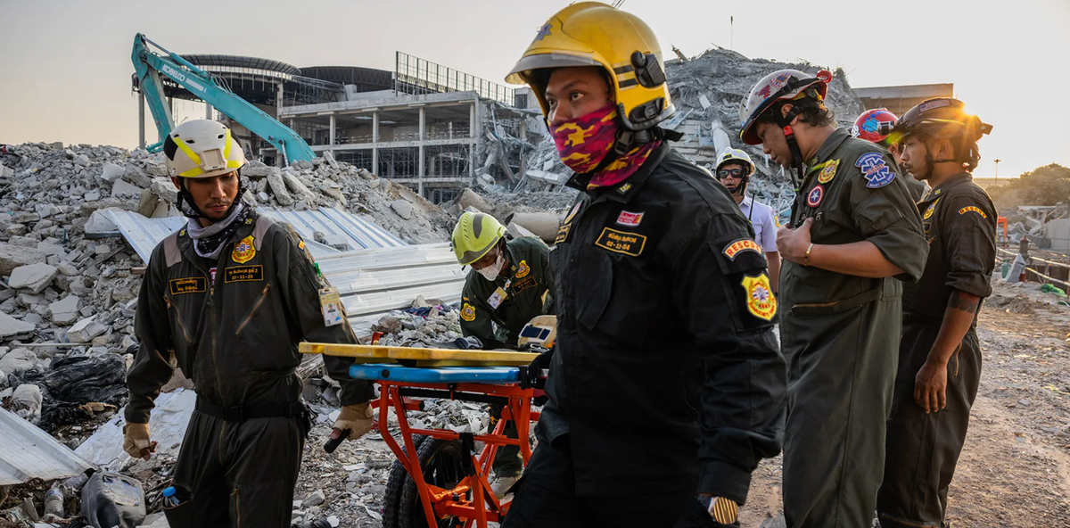Tại Mandalay, thành phố lớn thứ hai Myanmar, tình trạng thiếu trang thiết bị chuyên dụng khiến các đội cứu hộ và người thân của những người bị mắc kẹt phải đào bới bằng tay không để tìm kiếm những người mất tích.