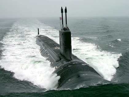| Tàu ngầm hạt nhân Virgina của Mỹ đang neo đậu ở cảng Subic, Philippines. Sức tấn công của Virgina được cho là đủ sức tiêu diệt nửa hạm đội Nam Hải của Trung Quốc |