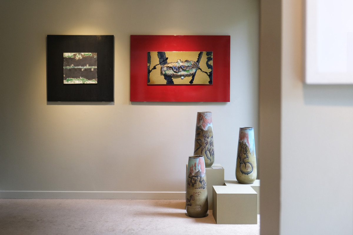 Ba nghệ sĩ, với cách tiếp cận và ngôn ngữ nghệ thuật riêng biệt, song tạo nên một sắc màu Tết mới. Nghệ sĩ Nguyễn Quốc Huy (1963), công phu tìm tòi và khám phá đất, nước, lửa trên nước men, sắc gốm để hình thành những tác phẩm gốm trừu tượng độc đáo, bên cạnh những tác phẩm thể nghiệm theo một bút pháp riêng trên chất liệu gốm của nghệ nhân Trần Nam Tước (1974).