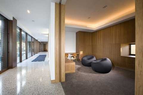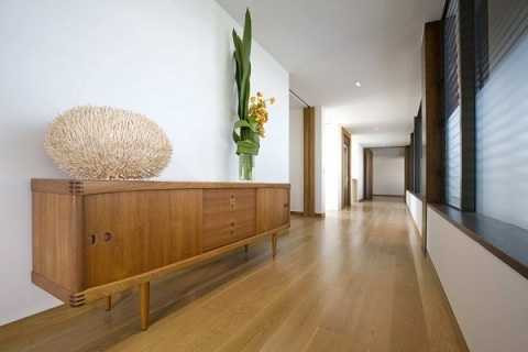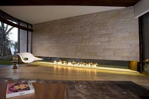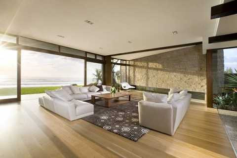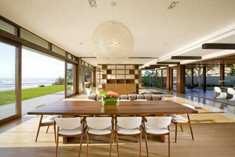 Được thiết kế trên khái niệm mở nên vật liệu kính trong suốt được sử dụng rất nhiều, để tạo ra một không gian ngập tràn ánh sáng đồng thời giúp chủ nhân có thể quan sát được cảnh đẹp bên ngoài. Gỗ kết hợp linh hoạt với bê-tông và đá mang đến cho ngôi nhà dáng vẻ sang trọng, trầm ấm mà thân thiện với môi trường.