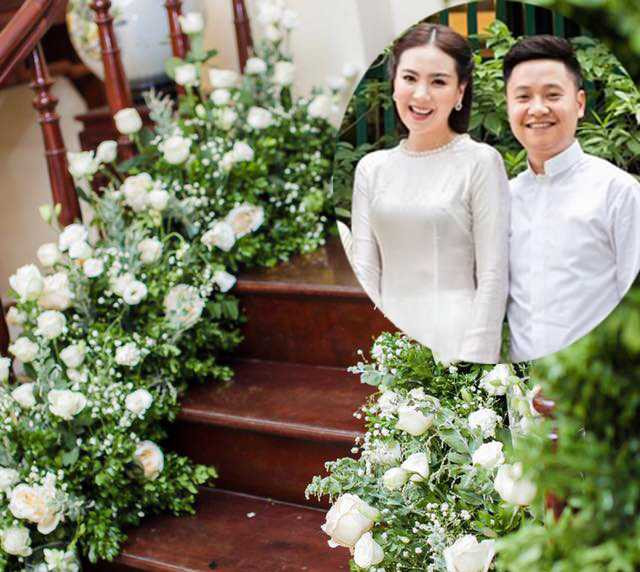 Người đẹp của chương trình "Dự báo thời tiết" lựa chọn màu trắng là tông màu chủ đạo trong việc trang trí lễ ăn hỏi.
