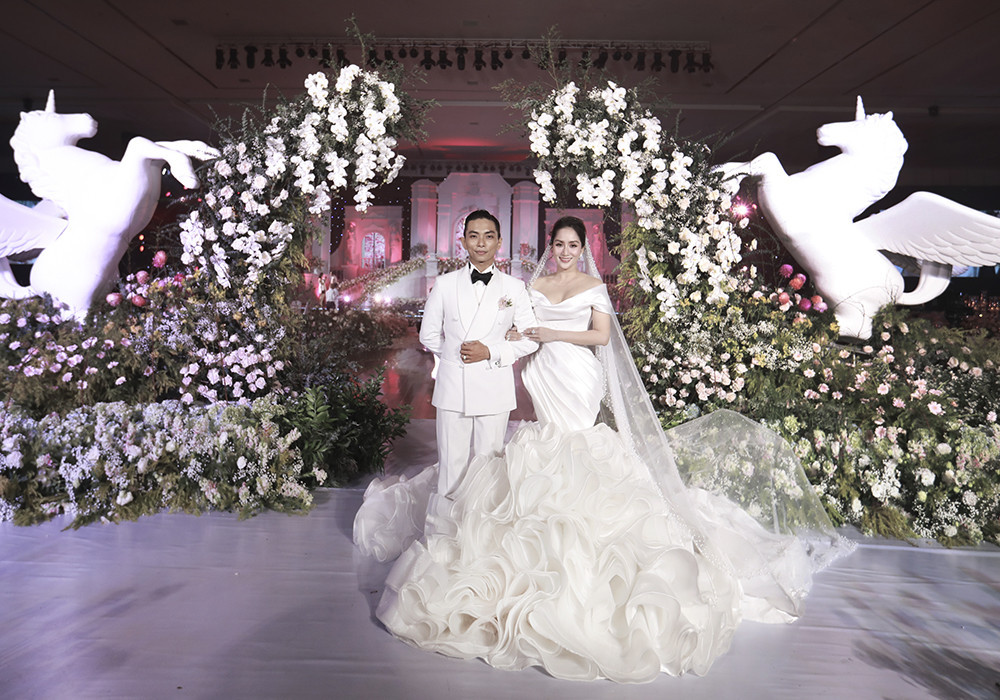 Chuyện tình của Khánh Thi – Phan Hiển được nhiều người ví von như cổ tích giữa đời thực. Chính vì thế, cặp đôi cho dựng một không gian lãng mạn, ngọt ngào với hoa phủ kín để khách đến có cảm giác lạc bước vào khu rừng.