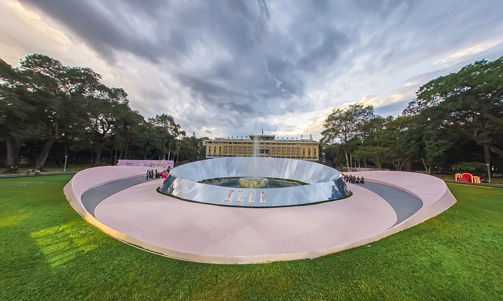 Đặc biệt, sàn diễn phi catwalk màu hồng trải dài trước dinh Độc Lập đã trở thành điểm nhấn độc đáo, mang đến một không gian đầy chất thơ, giúp cho bộ sưu tập đến từ các nhà thiết kế càng trở nên thăng hoa.