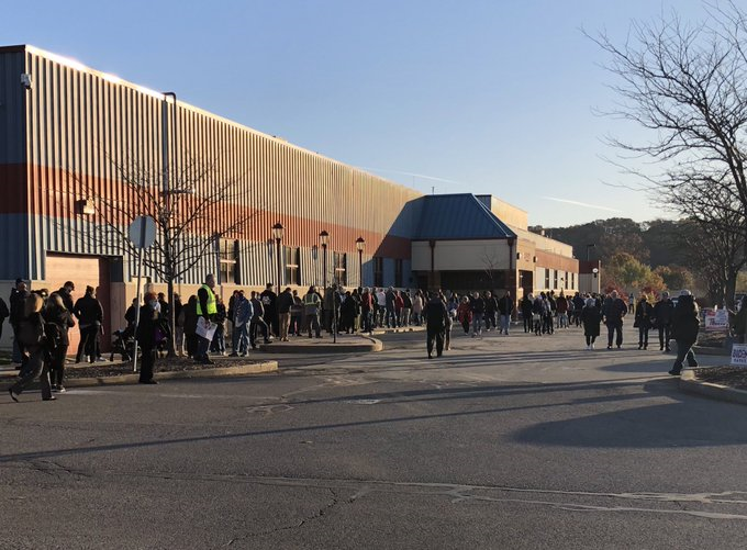 Cử tri xếp hàng bỏ phiếu ở Cranberry, Pennsylvania từ sáng sớm. (Ảnh: Twitter)