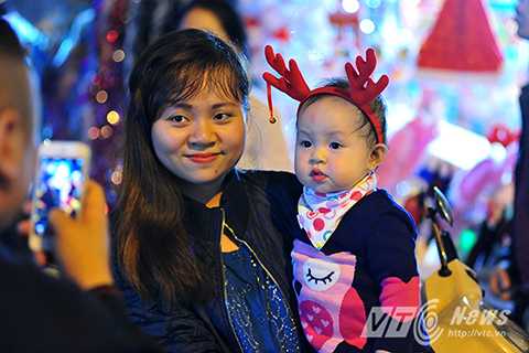| Các em nhỏ háo hức khi được cha mẹ dẫn đi chơi trong đêm Noel |