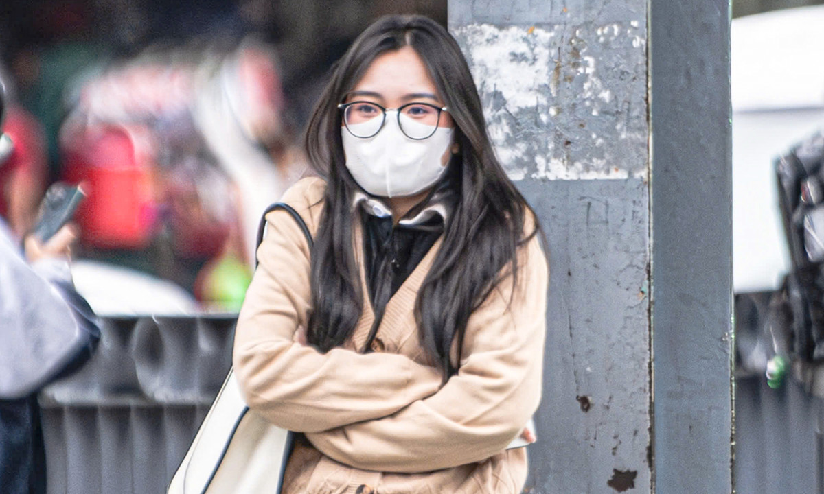 Trên các tuyến đường, người đi làm, đi học co ro trong lớp áo dày, đội mũ trùm đầu, đeo khẩu trang kín mít.