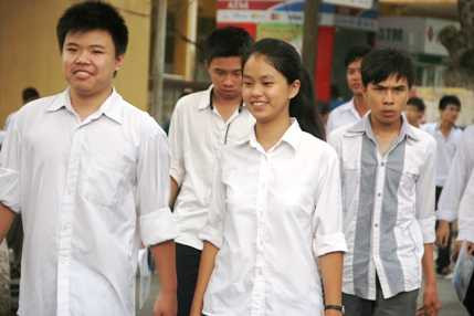 | Kết thúc buổi thi môn Toán, hầu hết các thí sinh tại hội đồng thi trường THPT Trần Phú lạc quan khi bước vào môn thi thứ 2 trong buổi chiều |