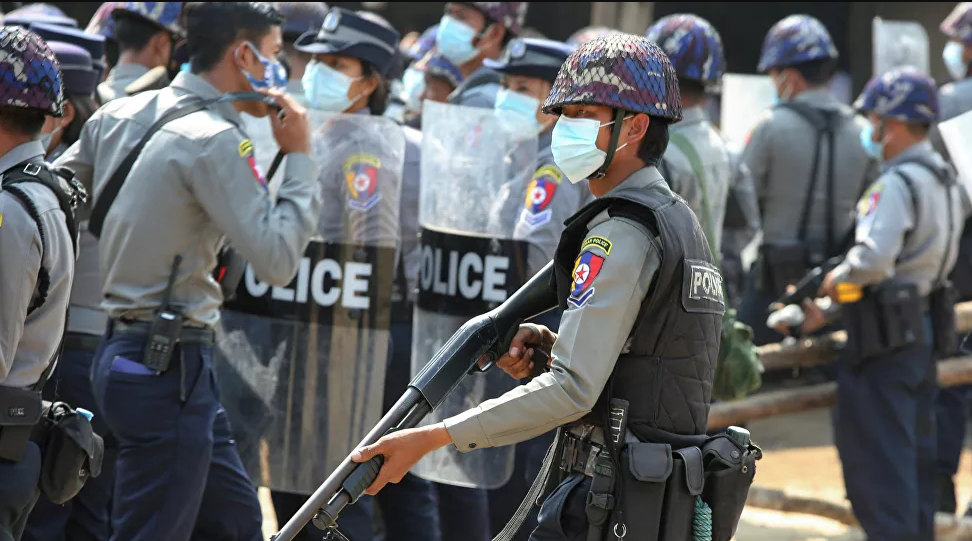 Cảnh sát Myanmar được điều động để trấn áp người biểu tình. (Ảnh: Reuters)