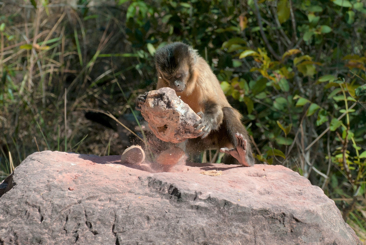 Khỉ Capuchin (Sapajus libidinosus) ở Brazil cũng sử dụng công cụ bằng đá để bẻ hạt, khỉ mũ cũng biết sử dụng công cụ đá để tách hạt cách đây 3.000 năm. Theo một nghiên cứu được đăng trên tạp chí Nature Ecology and Evolution, kiểu dáng công cụ của các loài linh trưởng đã thay đổi qua hàng thiên niên kỷ để đáp ứng với các loại thực phẩm khác nhau.