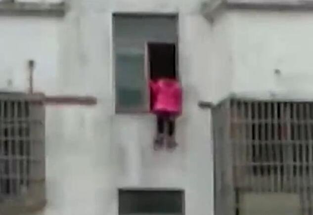 Sự việc xảy ra ở chung cư tại Phúc Châu, Giang Tây, Trung Quốc. Hình ảnh được ghi lại cho thấy cô bé 12 tuổi ban đầu trèo qua cửa sổ rồi nhảy xuống bên dưới.