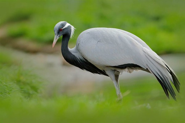 Sếu khuê tú phân bố chủ yếu ở vùng Trung Á. Vào mùa đông hàng năm, nó di cư về phía nam từ biên giới Trung Quốc và Mông Cổ, bay qua dãy Himalaya đến sa mạc Thar ở Ấn Độ. Hầu hết các giống sếu khuê tú đều có lông màu đen xám và mắt đỏ, viền mắt trắng kéo dài ra phía sau đầu rất đẹp. Sếu khuê tú dài khoảng 80cm khi trưởng thành, là loài nhỏ nhất trong tất cả các loài sếu.