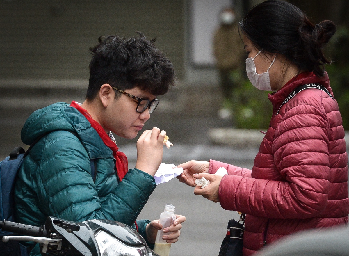 Học sinh vội ăn sáng kịp giờ vào lớp. (Ảnh minh hoạ: Đ.H)