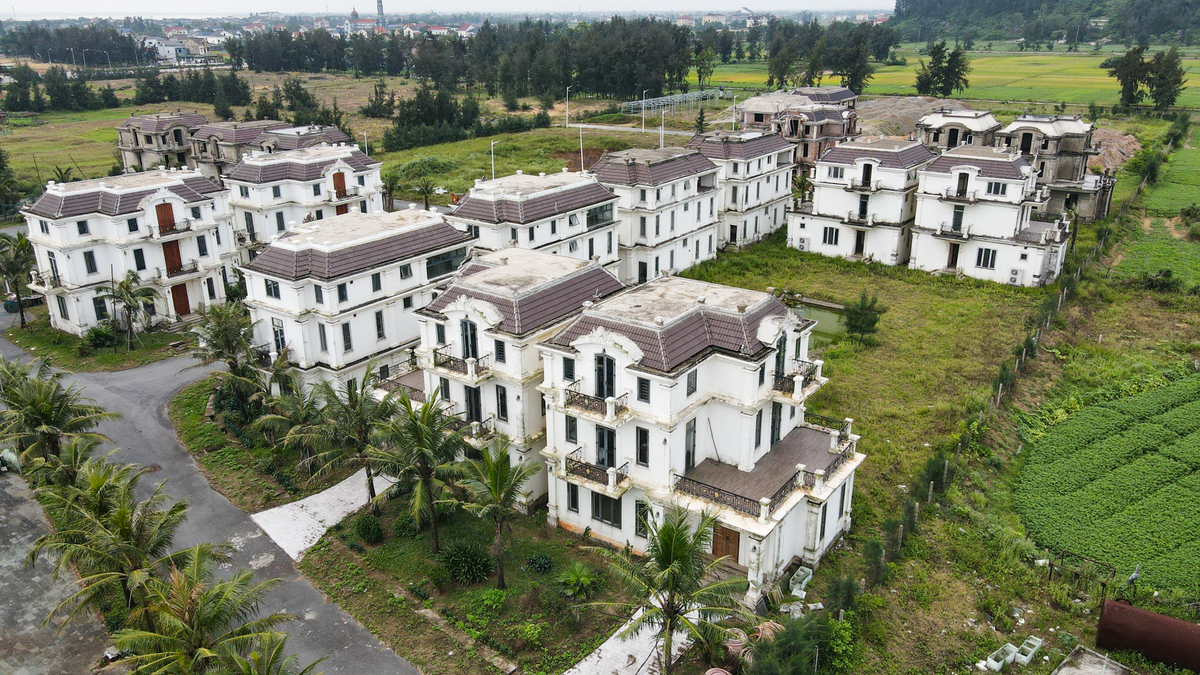 Nhiều căn nhà biệt thự nghỉ dưỡng chỉ mới xây dựng xong phần thô, nay đã ám màu rêu mốc, không có người ở.