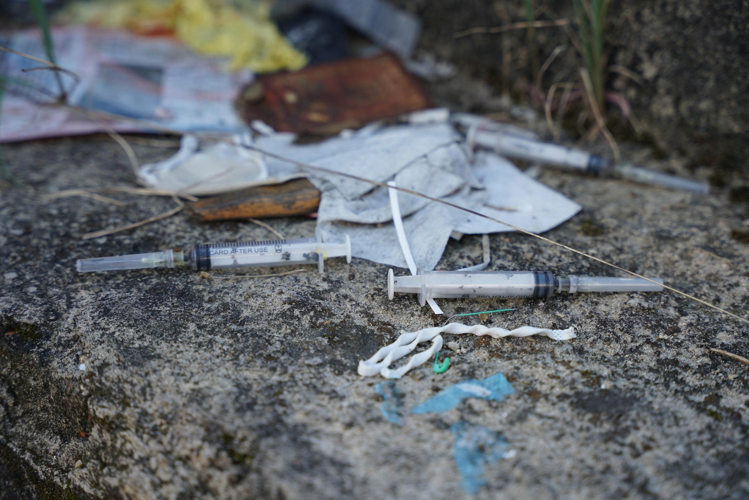 Khu đất cũng là nơi con nghiện lui tới để tiêm chích và bỏ lại bơm xi lanh còn nguyên mũi tiêm.