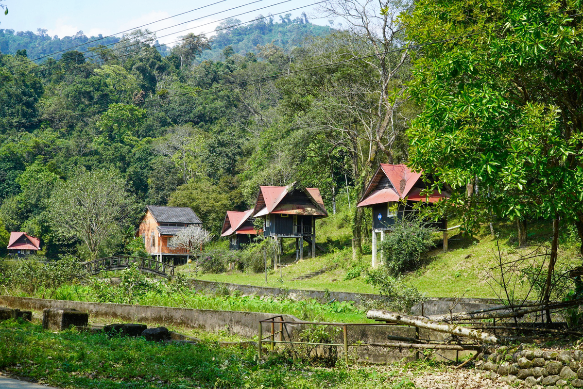 Những căn nhà sàn nằm hiu quạnh bên trong khu du lịch. Nhiều hạng mục đã xuống cấp.