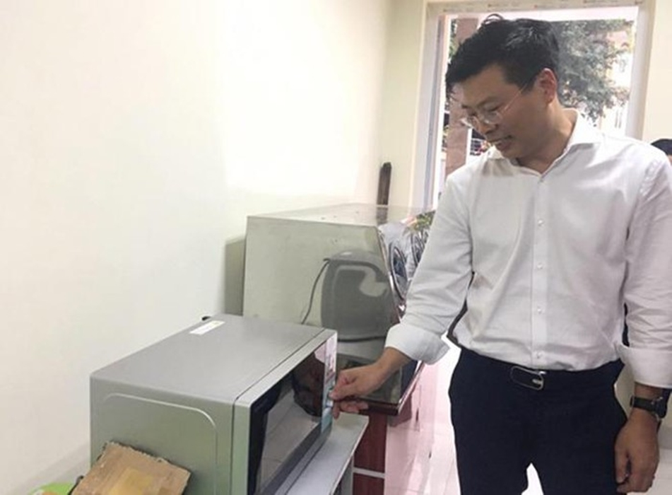 Chuyên gia của Viện Sức khỏe nghề nghiệp và môi trường khử khuẩn khẩu trang bằng lò vi sóng.