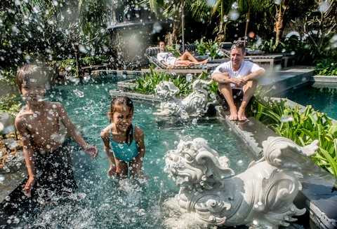 Ông Bill Bensley cũng đã mang đèn lồng sặc sỡ giăng đầy phố Hội vào thiết kế của mình. Những đường cong khơi gợi của đèn và bề mặt mềm óng của lụa hiện diện ở mọi nơi trong khu nghỉ dưỡng.