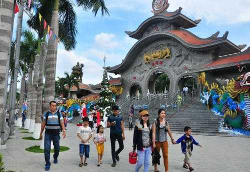 | Các em nhỏ được bố mẹ dẫn đi chơi lễ tại KDL Đầm Sen - Ảnh: Phạm Nguyễn |