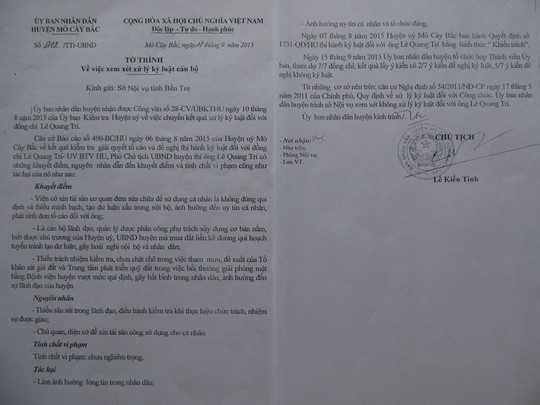 | Trước đây ông Lê Quang Trí đã nhiều lần bị kỷ luật nhưng chưa bị xử lý |