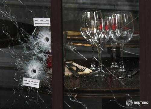 | Vết đạn trên cửa kính nhà hàng tại Paris |