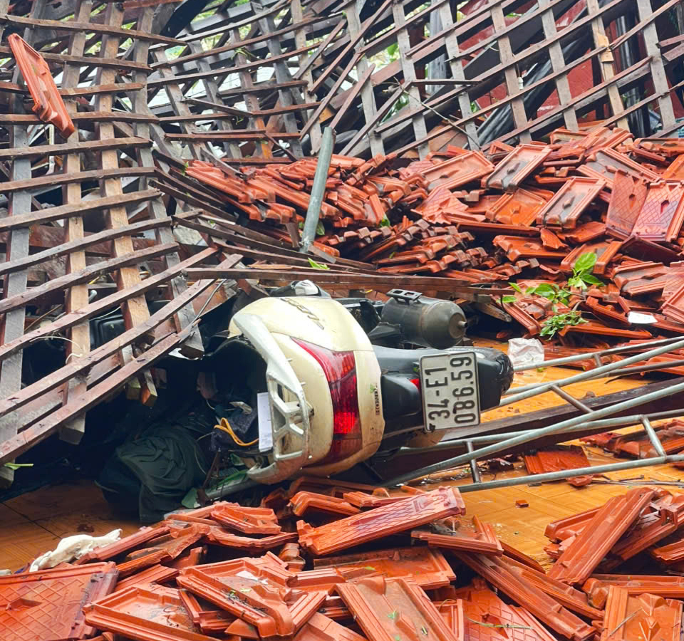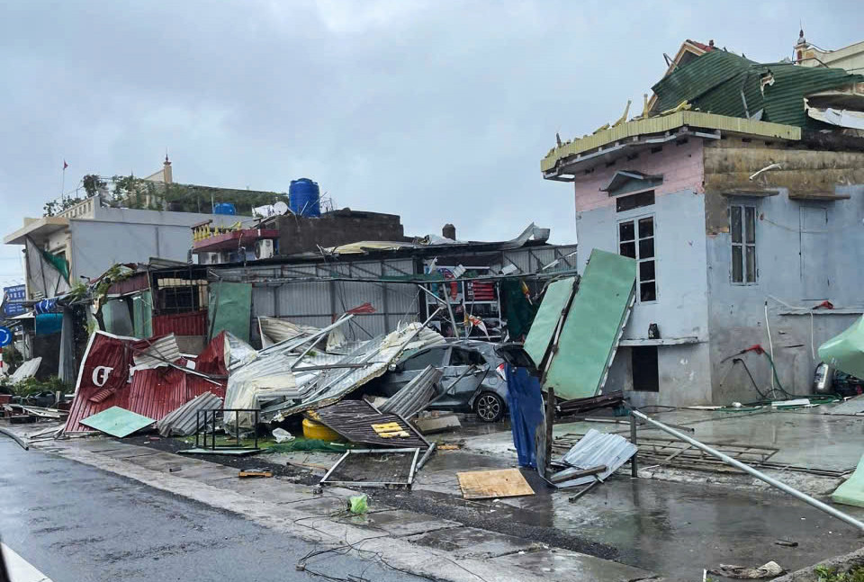 Hàng chục ngôi nhà của người dân tại xã Vĩnh Hải và Ninh Giang bị hư hại nặng do lốc xoáy quét qua.