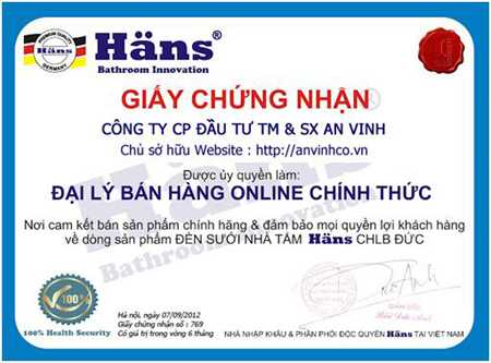 Anvinhco là doanh nghiệp bán hàng Online chính thức của Hans, với mong muốn đem lại sự ấm áp cho mọi gia đình, Công ty An Vinh mong muốn đem đến cho khách hàng sản phẩm đèn sưởi nhà tắm, đèn sưởi mùa đông chính hãng Hans nhập khẩu từ Đức với những mức giá hấp dẫn nhất chưa từng có trên thị trường.