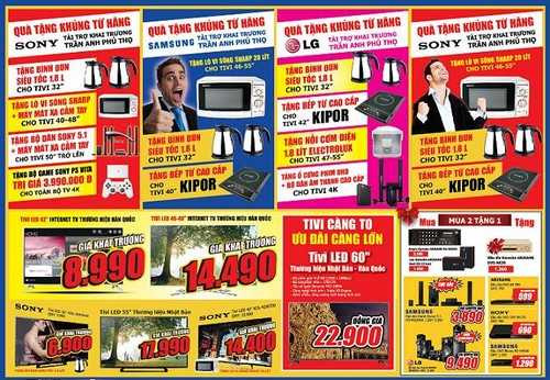 Bên cạnh quà tặng của Trần Anh, các hãng, nhà sản xuất cũng tài trợ nhân dịp khai trương bằng nhiều quà tặng hấp dẫn. Nhãn hàng điện tử nổi tiếng Sony tặng bộ game Sony trị giá đến 3,990,000đ khi mua toàn bộ tivi 4K, mua tivi Samsung nhận ngay lò vi sóng, bình siêu tốc, bếp điện từ cao cấp….