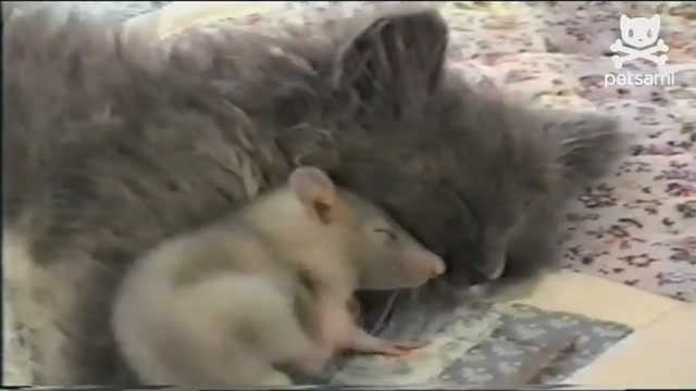 Kì lạ cảnh mèo và chuột ôm nhau ngủ ngon lành