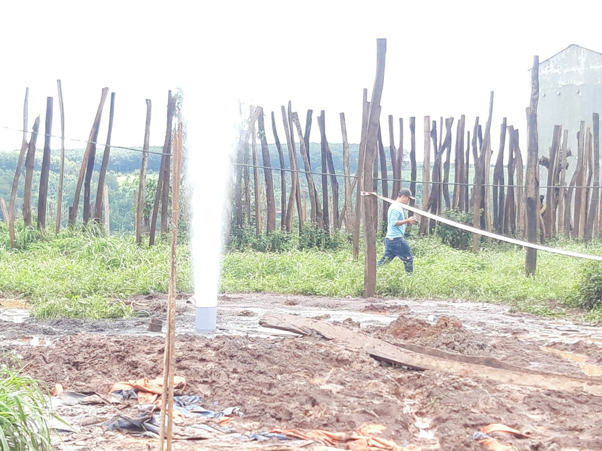 Đến trưa 30/7, ông lấy máy khoan tiếp tục khoan sâu thêm khoảng 10 m thì xuất hiện khí phun lên kèm nước.