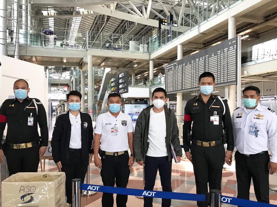 Trải qua hành trình bão táp kéo dài 2 ngày, Kiatisak cùng trợ lý Bundit Thiabthong cũng đã đặt chân đến sân bay Bangkok (Thái Lan) vào trưa ngày 10/08. Dù mới phải di chuyển 48 tiếng nhưng Kiatisak vẫn không giấu được niềm vui khi đặt chân đến Bangkok.