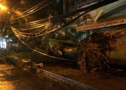 | Bão Pakhar khiến gần 500 căn nhà đổ sập và tốc mái, hơn 400 cây xanh bị đổ vào đêm 1/4/2012. |