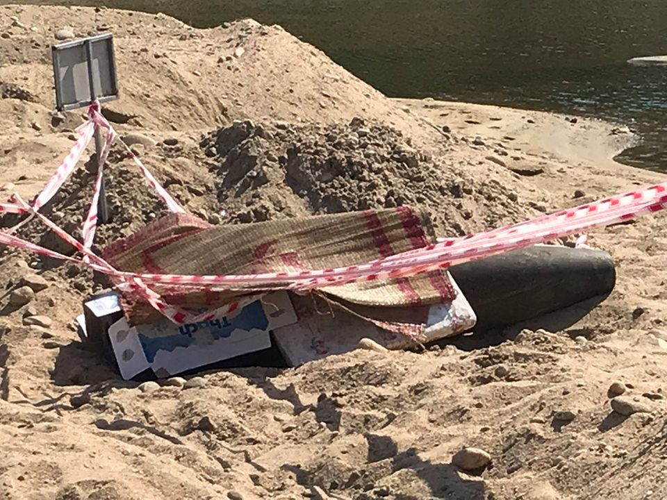 Quả bom nặng 250 bảng Anh được phát hiện dưới sông Trà Khúc. (Ảnh: B.Đ)