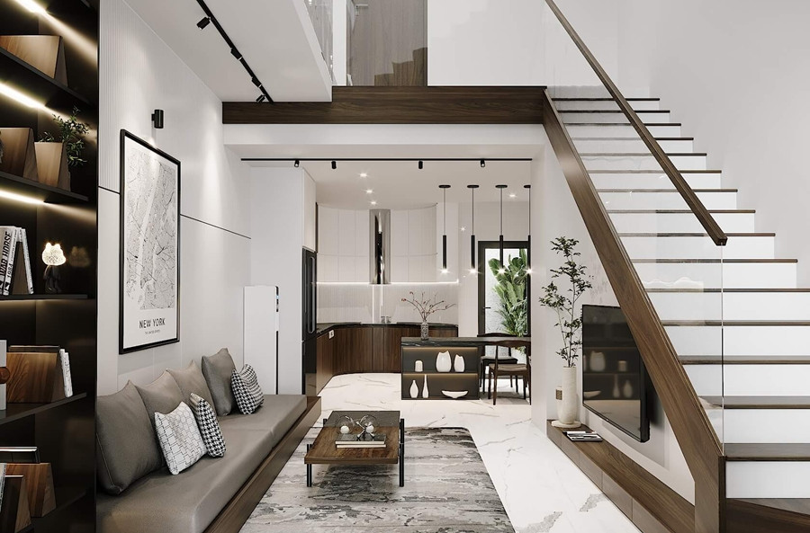 Chiều rộng của cầu thang chủ yếu dựa vào độ rộng của không gian. (Ảnh: SBS House)