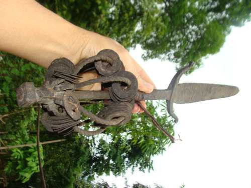 Tôi cầm thanh kiếm múa thử, nhưng cảm giác không được thoải mái. Có lẽ, đôi kiếm này chỉ mang giá trị tâm linh, chứ không phải dùng để ra trận. Khi nâng hạ kiếm, những chiếc đồng xu va đập vào nhau leng keng nghe vui tai và có lẽ để tạo âm thanh trong những buổi thầy cúng múa kiếm.
