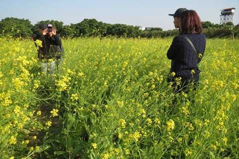 Nhà nọ “mách” nhà kia, giờ đây, đồng cải mênh mông vàng rực ở gần trường Đại học Nông nghiệp đã trở thành một “trung tâm dịch vụ chụp ảnh” rất hút khách, nhất là vào dịp cuối tuần, góp phần đem lại thu nhập đáng kế cho người dân nơi đây.