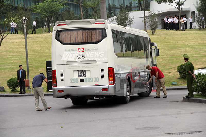 | Khi đảm bảo chiếc xe an toàn thì đặc vụ Mỹ cùng chó nghiệp vụ sẽ chở về chỗ ngồi và cho phép xe tiến vào sảnh khách sạn |