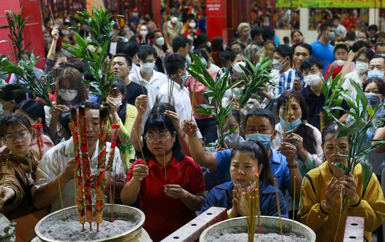 Người dân cầu an tại Chùa Bà (Bình Dương) tháng 2/2023. (Ảnh: Y Kiện).