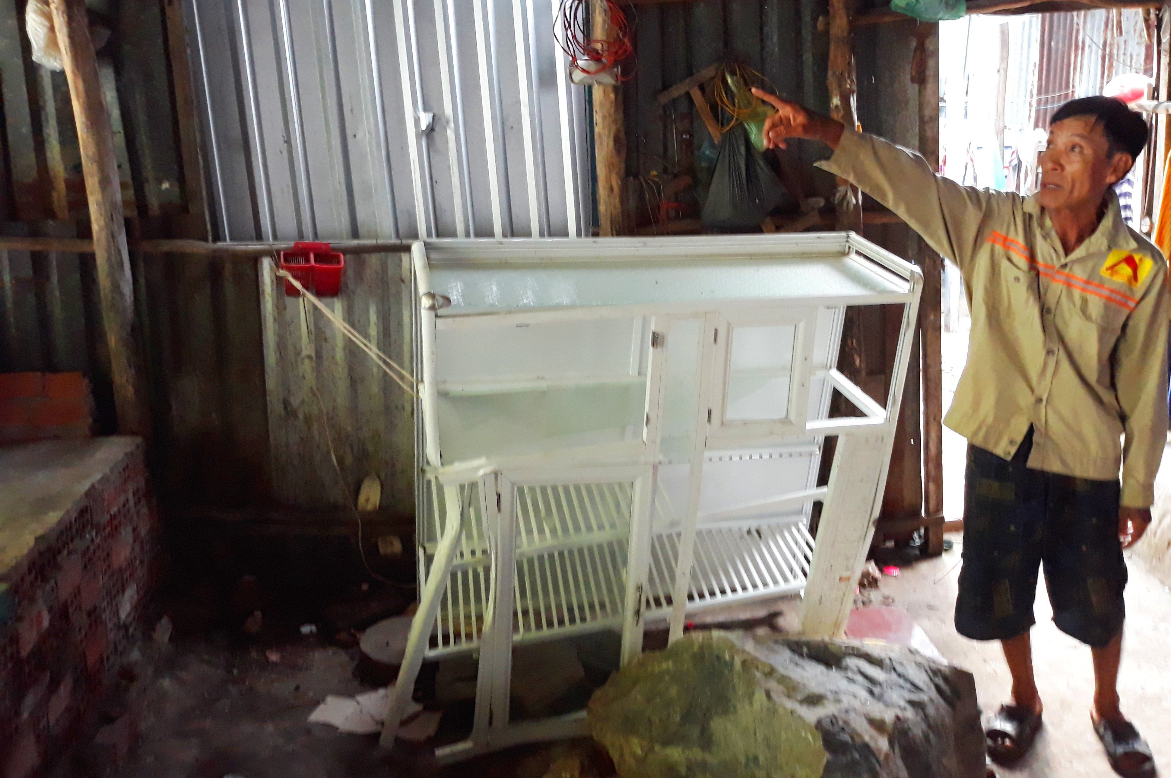 Ông Nguyễn Văn Dương chỉ nơi hòn đá lăn từ trên núirơi vào nhà ông (ảnh: Phan Nguyễn).