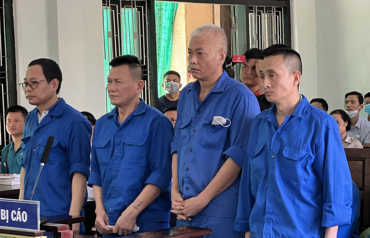 Các bị cáo tại phiên toà xét xử sơ thẩm. (Ảnh: Ngọc Minh).