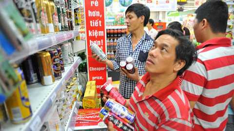 | Khách hàng lựa chọn các nhãn hàng bia nhập khẩu được bán trong siêu thị (Ảnh: Thanh Đạm/Tuổi trẻ) |