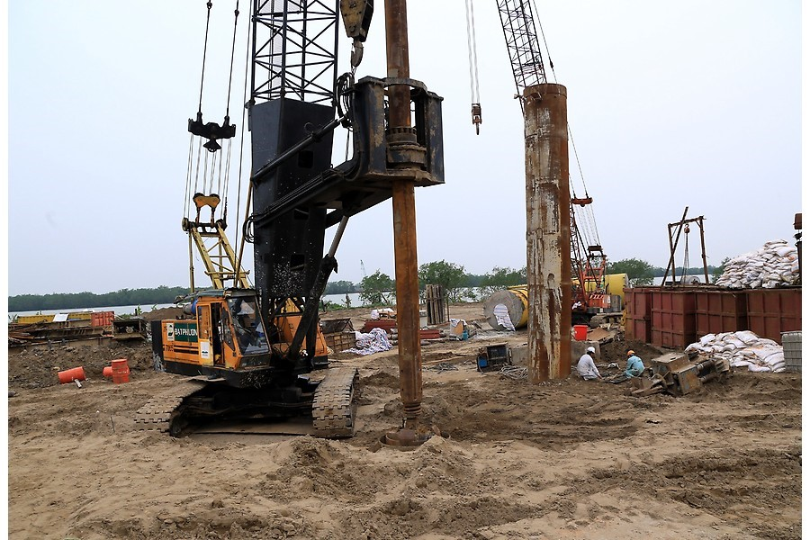 Thi công nền đường dự án đầu tư xây dựng tuyến đường bộ ven biển đoạn qua địa bàn thành phố Hải Phòng và 9 km trên địa bàn tỉnh Thái Bình. (Ảnh: ANHP)